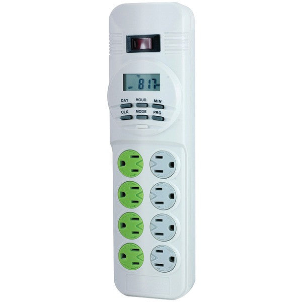 GE 14024 Digital Timer with 8-Outlet Surge Protector & 4ft White Cord